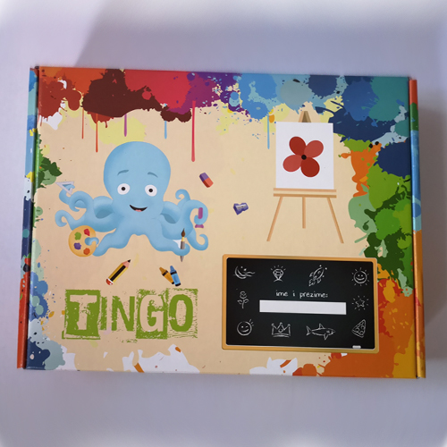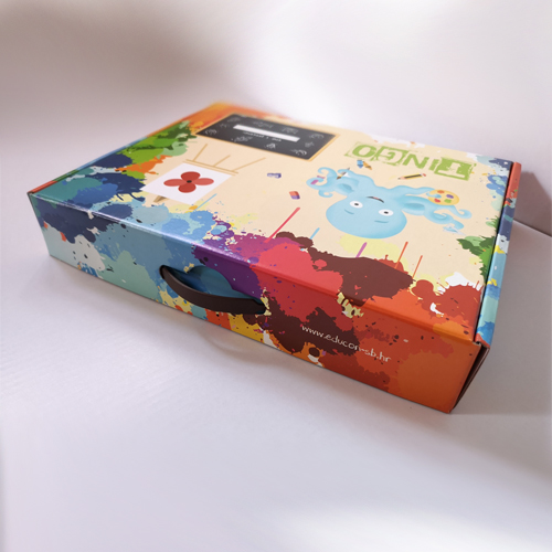 Kartonske kutije za likovni / likovne mape, proizvedene po narudžbi uz custom made dizajn i print. Kutija ima ručkicu kako bi se olakšalo nošenje.